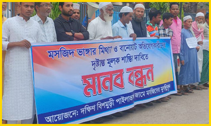 নীলফামারীতে মিথ্যা মসজিদ প্রচারণা প্রতিরোধে মানববন্ধন