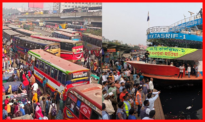 ঈদের টানা ছুটিতে বাস-ট্রেন-লঞ্চে ঘরমুখো মানুষের ঢল